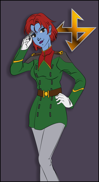 A master of tactical thought and military theory, Vunken has made a lifelong study of the art of War. Indeed, when the expedition to our universe was first proposed Vunken was thought to be the natural choice to command it. However, as the plan evolved, the military option became less likely, and as such she found herself serving directly under Zanza Gaara, as field commander.