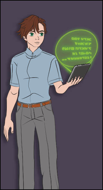 He’s a very intelligent young man. He just graduated from university with a degree in Xenolinguistics. Not quite ready to enter the workforce in earnest, Mark came home to clear his head and figure out his next step. In the meantime, he’s combining his two passions, alien languages and computers to create a next-generation auto-translation system.